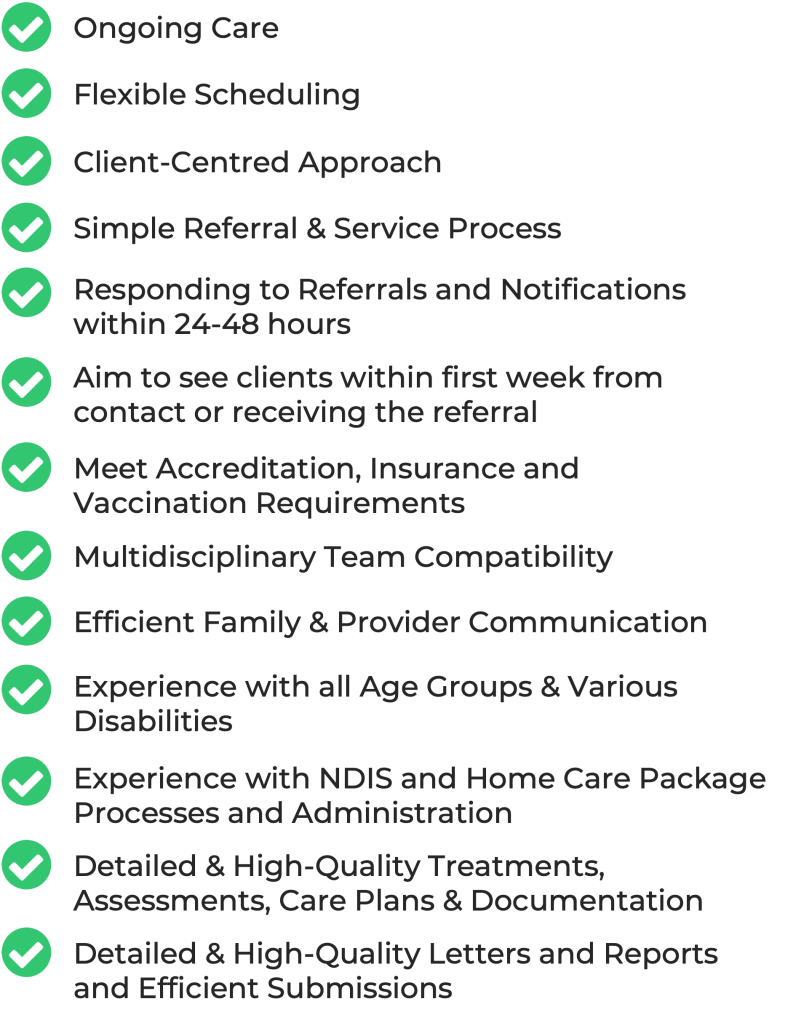 We are proud to have satisfied many long-term clients, providers and coordinators, and we take feedback seriously to ensure that we continuously improve our service. We are committed to providing the highest level of care and personalised attention to each client we serve.